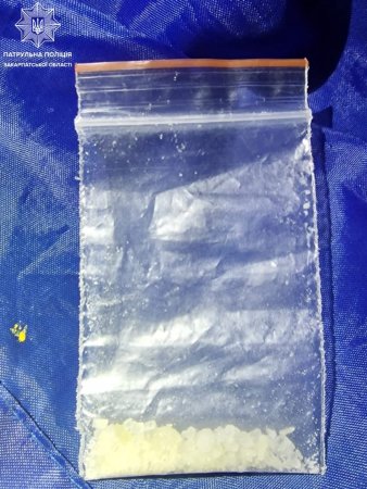 Під час спілкування з водієм інспектори помітили, що чоловік помітно нервує. Це викликало підозру, тож патрульні провели поверхневу перевірку. У салоні авто вони виявили зіп-пакет із білою кристалічною речовиною, схожою на наркотичну, а також металевий кийок біля сидіння водія.