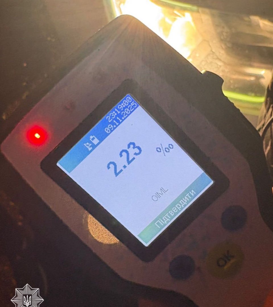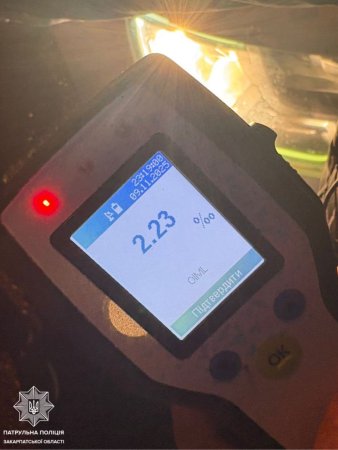 Водію було запропоновано пройти огляд на стан сп’яніння. Результат тесту на приладі "Драгер" шокував: він показав 2,23 проміле алкоголю в крові, що більш ніж в одинадцять разів перевищує допустиму норму (0,2 проміле).