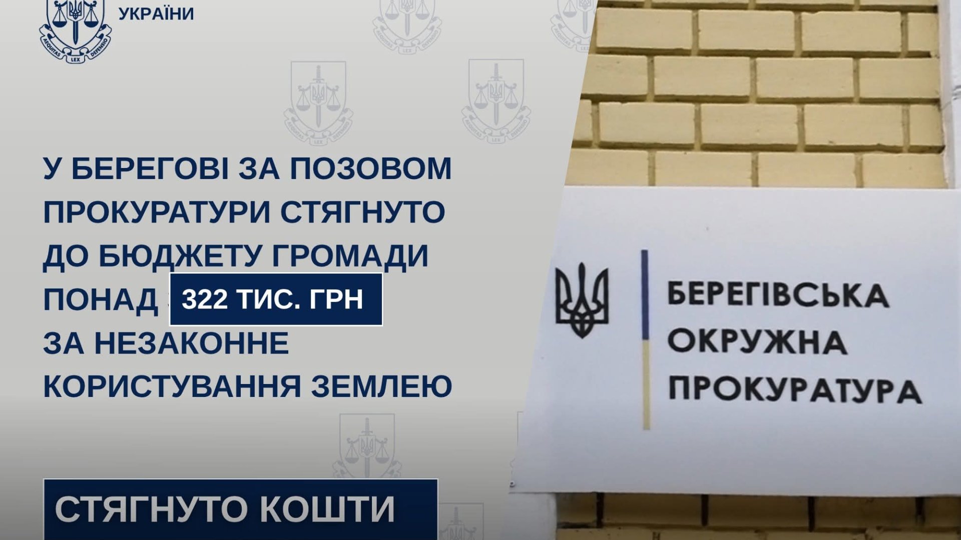 Берегівська окружна прокуратура забезпечила виконання судового рішення, завдяки якому до місцевого бюджету громади було стягнуто понад 322 тис. грн. Ці кошти є компенсацією за незаконне та безпідставне користування комунальною землею.