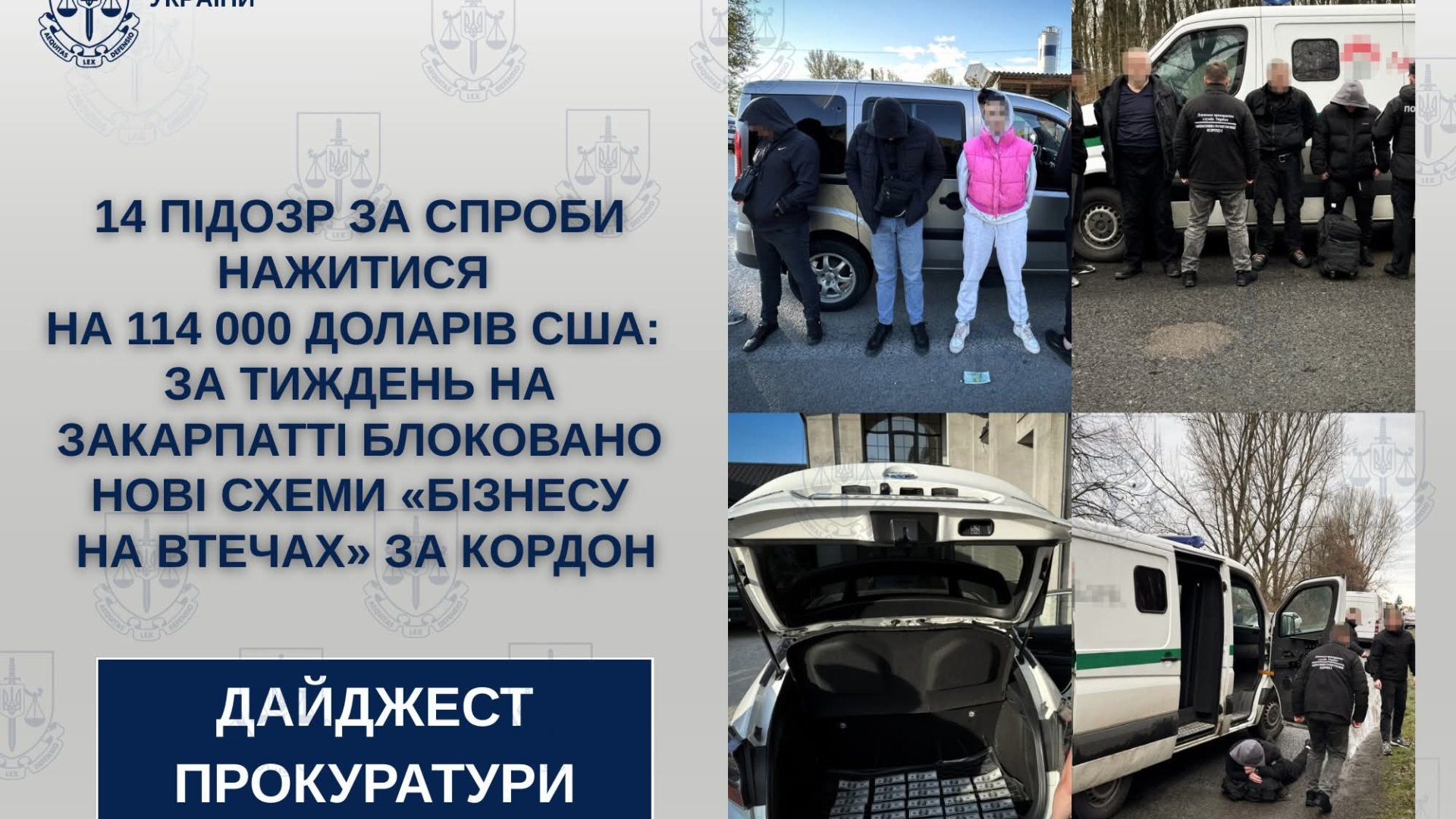 Прокурори Закарпаття спільно з правоохоронними органами демонструють системну боротьбу з організаторами незаконного переправлення чоловіків призовного віку через державний кордон України. За підсумками лише одного тижня зафіксовано значні успіхи в блокуванні злочинних схем.