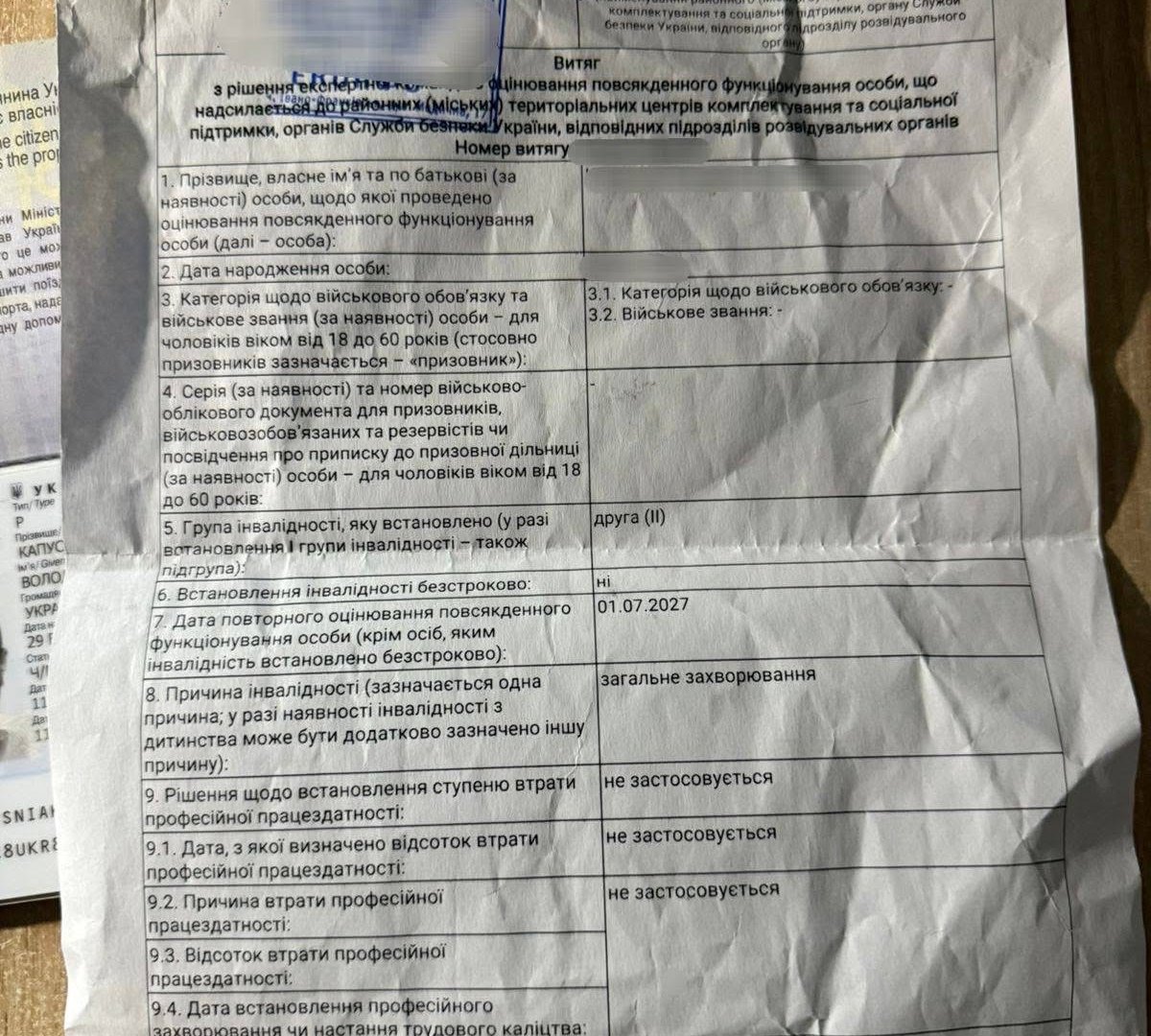 44-річний мешканець Івано-Франківська намагався виїхати до Словаччини через пункт пропуску «Тиса». Разом із паспортом чоловік надав пенсійне посвідчення особи з інвалідністю та витяг із рішення експертної команди.
