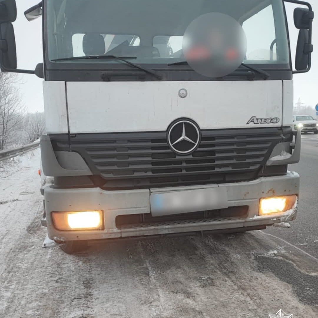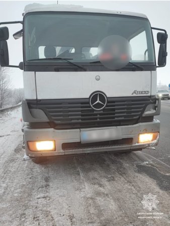 Днями екіпаж відділу безпеки дорожнього руху, патрулюючи трасу М-06 Київ–Чоп, помітив вантажний автомобіль Mercedes-Benz. Водій вантажівки порушив ПДР, що і стало причиною зупинки.