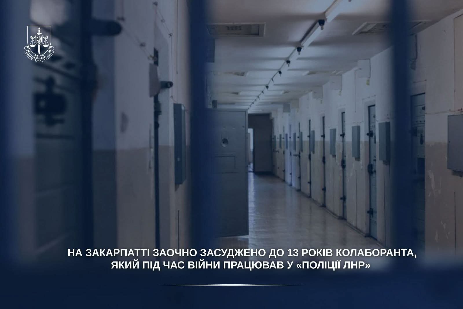 На Закарпатті заочно засуджено до 13 років колаборанта, який під час війни працював у «поліції лнр», діючи проти інтересів України. Судовий процес проходив у заочному режимі (in absentia), оскільки обвинувачений наразі переховується на тимчасово окупованій території Луганської області.