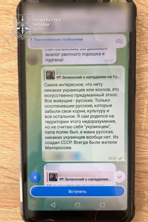 Окрім цього, чоловік систематично просував наративи, спрямовані на підрив української державності, зокрема: