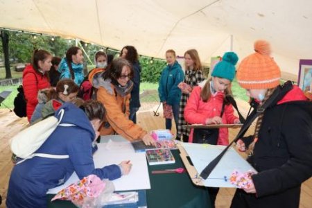 Усі охочі мали змогу побачити виставку дитячого малюнка на тему: «Альфонс Муха – видатний художник». А.Муха (1860-1939) - чеський художник, ілюстратор, ювелірний дизайнер і плакатист, один з найвідоміших представників стилю «Арт Нуво». У «Відкритому офісі» експонувалися вибрані роботи учнів Ужгородської дитячої школи мистецтв, які вони намалювали в рамках відповідного конкурсу. Захоплені мистецтвом, діти не полишали улюблене заняття і на виставці, створюючи нові твори.