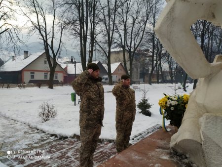 Сьогодні, 22 січня, в Рахові, з нагоди Дня Соборності України відбулося покладання квітів до пам’ятника Тарасу Шевченку.