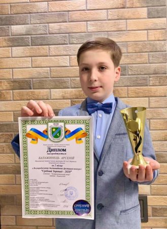 Талановитий вихованець Мукачівської дитячої школи мистецтв імені С. Мартона Арсеній Балажинець здобув II місце на всеукраїнському дистанційному фестивалі-конкурсі «Срібний Зорепад-2020».