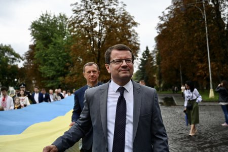 До колони долучилися очільник обласної ради Олексій Петров, міський голова Ужгорода Богдан Андріїв, керівники структурних підрозділів ОДА, представники дипломатичного корпусу, духовенство, військові, ветерани та інші.