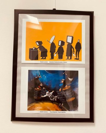 Художні роботи, які представлені відвідувачам - це витвори переможців Міжнародного конкурсу карикатур під назвою «Чхання мозку - від калокагатії до іпохондрії та назад» створені в рамках проєкту, який реалізується за підтримки Міжнародного Вишеградського фонду.