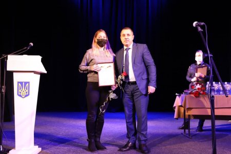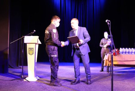 Із нагоди свята Василь Гомонай вручив грамоти Ужгородської міської ради працівникам управління патрульної поліції в Закарпатській області Департаменту патрульної поліції – капітану поліції Анатолію Скунцю, лейтенанту поліції Михайлу Северину та провідному спеціалісту сектору документального забезпечення Юлії Лукіній.