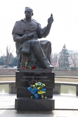 Заслужений академічний Закарпатський народний хор сьогодні, в день 83-річчя проголошення Карпатської України, виконав кілька композицій біля пам’ятника її Президенту – Августину Волошину – на набережній Незалежності в Ужгороді.