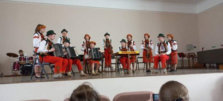 тим часом на сцені розмістилися учасники оркестру народних інструментів народного відділу фахового музичного коледжу «Віртуози Закарпаття», які під керівництвом заслуженої працівниці культури України, директорки закладу – Світлани Іванівни СТЕГНЕЙ, виконали цікаву концертну програму, для всіх учасників обласного конкурсу.