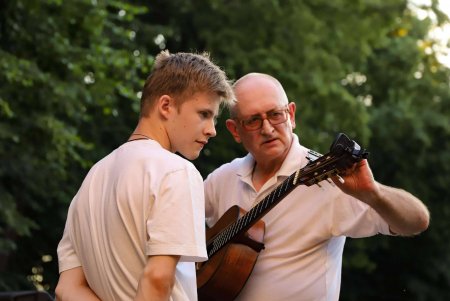 Легка романтична музика допомогла присутнім хоч ненадовго відволіктися від тривог сьогодення. А один із глядачів, який виявився студентом Ужгородського музичного фахового коледжу імені Дезидерія Задора, не втримався і попросив у гітариста дозволу також зіграти.