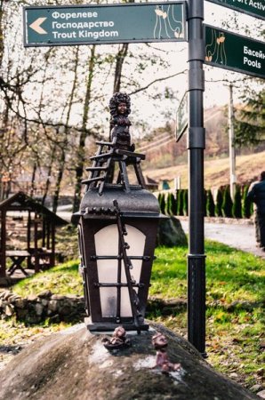 «Це перша сімейна мініскульптура Закарпаття. На кованому працюючому ліхтареві, до вершини якого веде драбина, стоїть строга кельтська жінка з домашнім мацуром (кельтська кішка – європейська короткошерста), біля якої курчатко (одна з назв кельтів в Європі – гали, слово «gallus» з французької курка). Мама-кельт дивиться на двох дітлахів (символізують курорт Воєводино, якому 20 років та парк Шенборна, якому 10 рокі)», інформує Федір Шандор