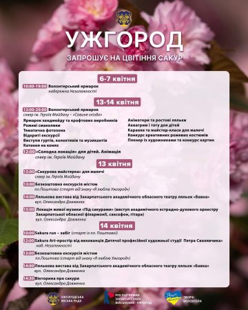 Безкоштовні екскурсії, арт-заходи, концерти та забіги під сакурами. Уся програма тут 🔽