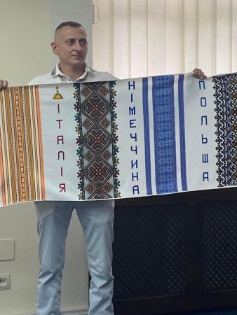 🪡 Рушник уже вишили в 13 областях України, Києві, АР Крим та в 9 країнах світу. За словами організаторів, у Німеччині відтворили орнамент з вишиванки Ярослава Стецька, в Італії – Йосипа Сліпого, в Австрії відобразили узор з колекції Василя Вишиваного.