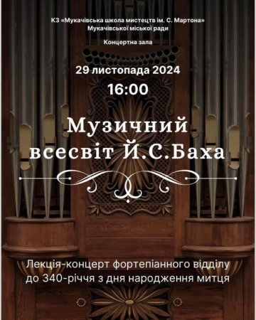 З нагоди 340-річчя від дня народження всесвітньо відомого композитора Йоганна Себастьяна Баха у концертній залі Мукачівської школи мистецтв їм. С.Мартона відбудеться лекція концерт «Музичний всесвіт Й.С. Баха».