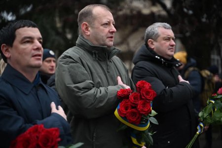 Керівництво області та міста, військовослужбовці, правоохоронці, духовенство, дипломати європейських країн і громадськість поклали квіти до памʼятника видатному закарпатцеві, борцеві за єдину Україну.