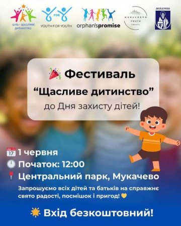 До Дня захисту дітей у Мукачеві пройде фестиваль «Щасливе дитинство»