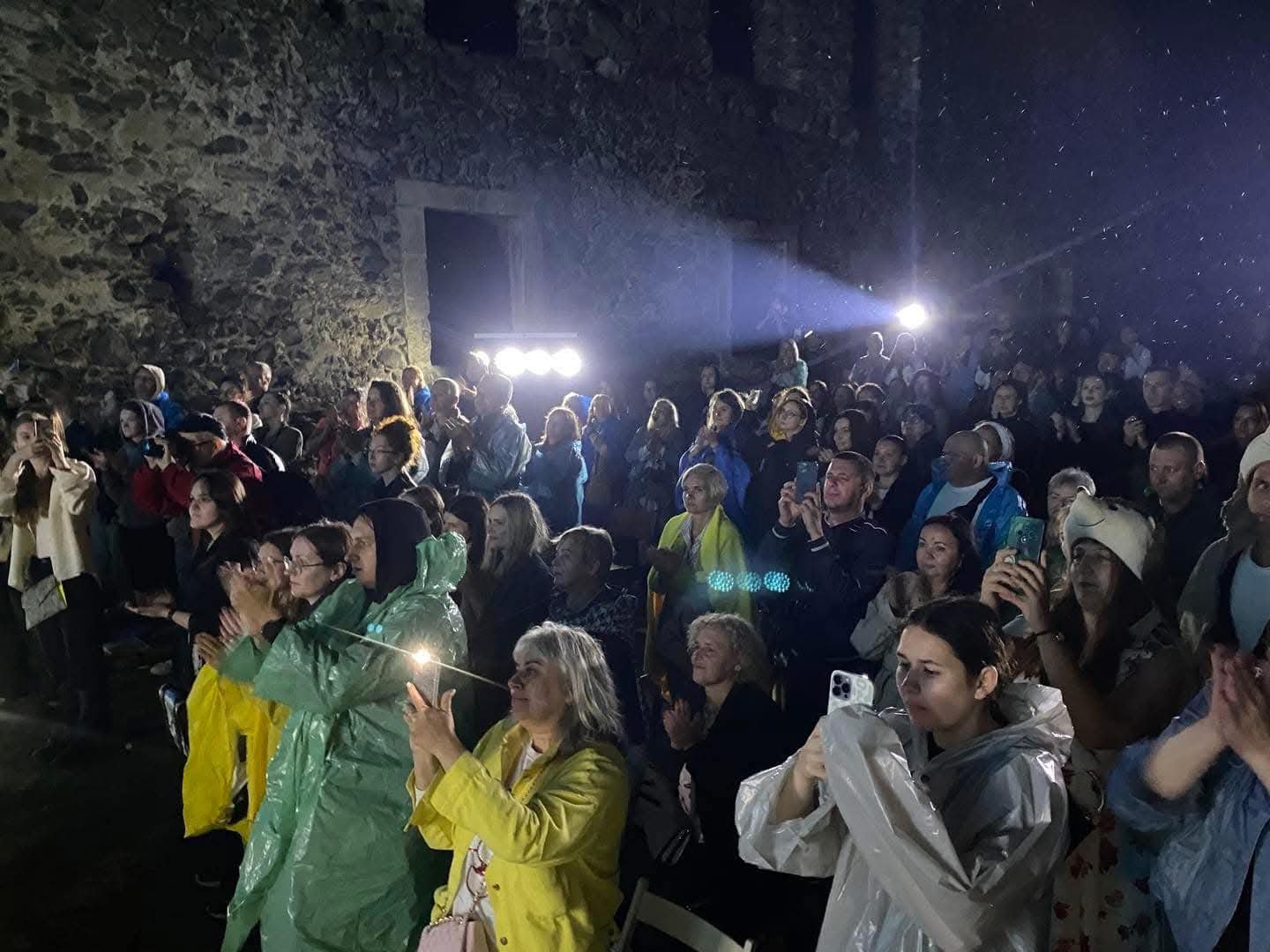Показ розпочався о 20:00. Кам'яні стіни середньовічного замку, його величний антураж та відкрите небо створили ідеальний фон для розгортання подій. Ця унікальна локація дозволила глядачам повністю зануритися в епоху та відчути всю глибину драматичних поворотів.