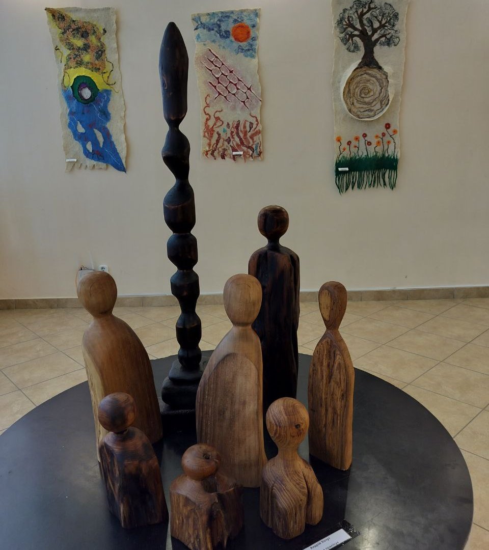 Свій особливий шлях до виставки пройшла і Олеся Кочут. Вона захопилася технікою сухого та мокрого валяння вовни – матеріалу, що відкриває безліч можливостей для втілення фантазій. Для своїх робіт мисткиня використовує вовну тонкорунних овець зі Швейцарії та Італії, а також волокна віскози, льону, шовку та крепдешину.