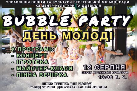 У Берегові відзначать День молоді: запрошують на свято з концертом, майстер-класами та пінною вечіркою