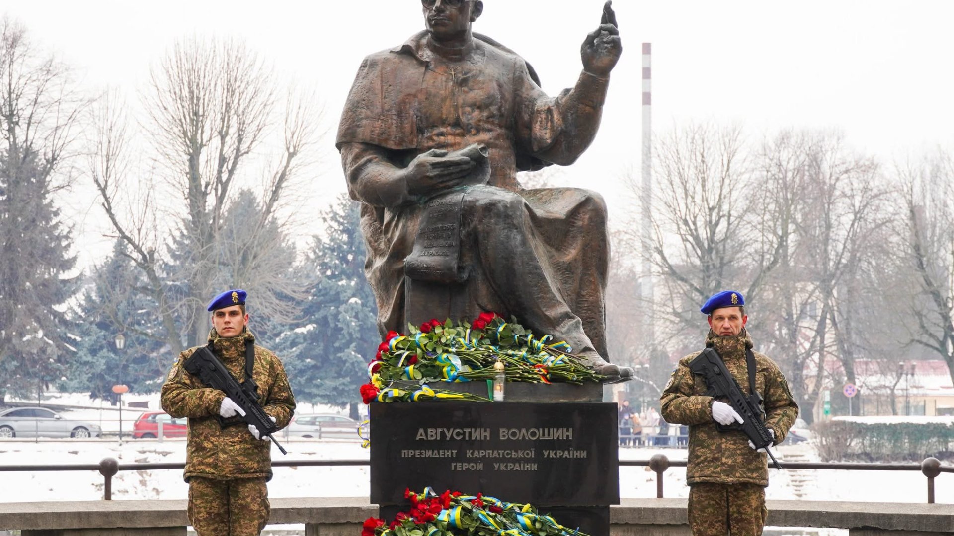 З нагоди державного свята вранці в Ужгороді біля пам’ятника Герою України, президенту Карпатської України Августину Волошину, зібралися керівники області та міста, військовослужбовці, представники духовенства, дипломатичного корпусу та мешканці міста.