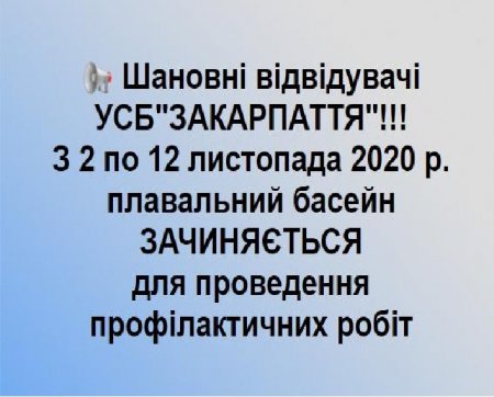 Плавальний термальний басейн УСБ "Закарпаття" зачиняється