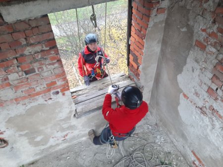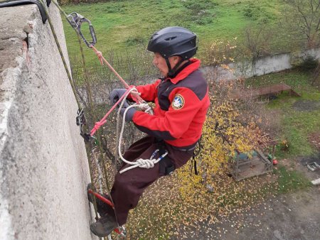 У свою чергу їх колеги з гірського пошуково-рятувального відділення м. Мукачево зайнялися відпрацюванням тактики надання допомоги та спуску потерпілого з висоти.