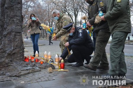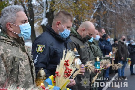 До участі у пам’ятному заході долучився заступник начальника поліції краю полковник поліції Роман Ус. Разом з іншими учасниками правоохоронці запалили «свічку пам’яті» та приєдналися до загальнонаціональної хвилини мовчання.