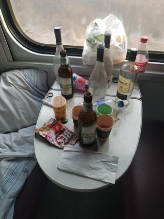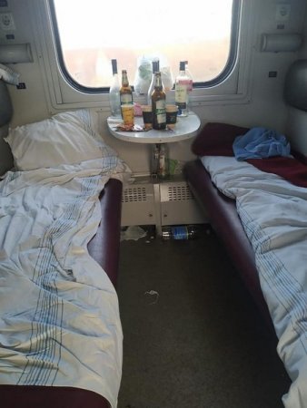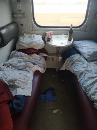 "Поводилися дуже не гарно та огидно, неможливо підібрати слова. У туалетах поламали крани, ліжка залишили брудними. На прохання провідника поводитися пристойно не реагували. Подивіться, в якому стан вони залишили вагон. Як взагалі можливо, так себе вести”, — йдеться у дописі.