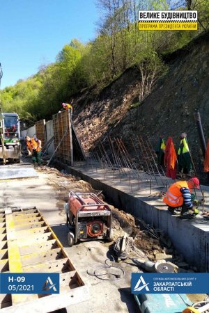 На найдовшому маршруті області - Н-09 Мукачево – Рахів – Івано-Франківськ – Львів - триває будівництво одразу 6 підпірних стінок. Дорогу-рекордсменку по кількості підпірних стінок ремонтують у межах програми Президента України Володимира Зеленського «Велике будівництво».