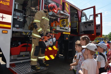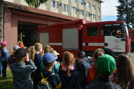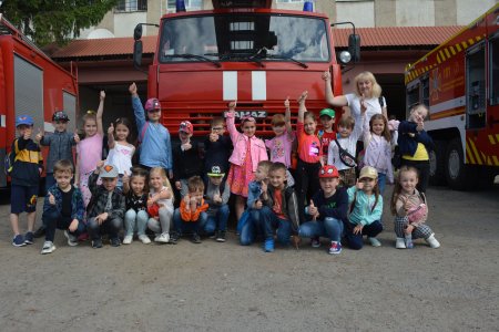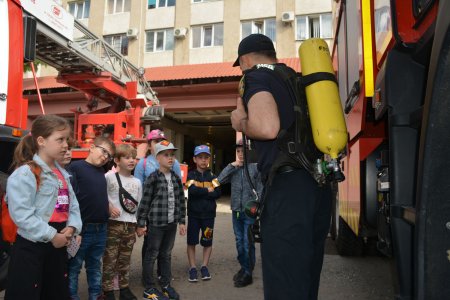 Під час екскурсії в частині влаштували навчальну тривогу, щоб діти побачили, як черговий караул збирається й виїжджає на ліквідацію загорання. Далі вогнеборці показали школярам “начиння” пожежного автомобіля й розповіли про призначення кожного виду спорядження. Учні мали можливість пустити воду з пожежного ствола та приміряти бойовий одяг співробітників ДСНС.
