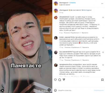 На жаль, чимало українських блогерів продовжують "хайпувати" на темі жахливої страти українського полоненого росіянами. Після скандалу з ексчиновницею Васілісою Мазурчук, яка заявила, що полонений помер "не гідно", тепер "зашкварився молодий блогер із Закарпаття Віктор Бендик, відомий під псевдонімом "Чорний гуцул". Хлопець обурив Мережу своїм відео про страченого українського воїна.