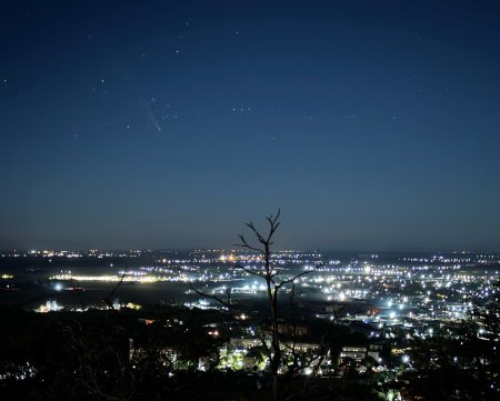 "Зловив на телефон комету C/2023 A3 (Tsuchinshan-ATLAS) та Велику Ведмедицю над Мукачевом. Погода сприяла, небо чисте. Краса" - написав він.