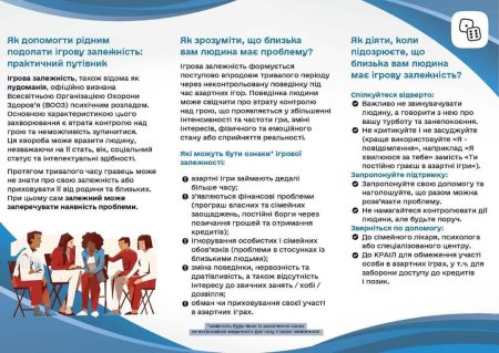 Комісія з регулювання азартних ігор та лотерей (КРАІЛ) підготувала практичний посібник для тих, хто має родичів або близьких, які стикаються з ігровою залежністю.