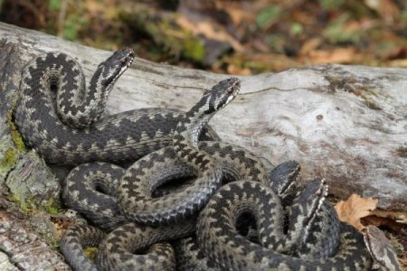 Гадюка звичайна – найчастіше зустрічається у Поліссі, Карпатах, а також місцями в лісостеповій місцевості. Її виокремлює характерна зигзагоподібна лінія на спині.