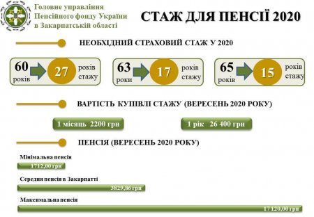 Мінімальна пенсія у вересні 1712 гривень, середня – 3829,86 грн. Максимальна розмір на Закарпатті становить 17120 гривень.