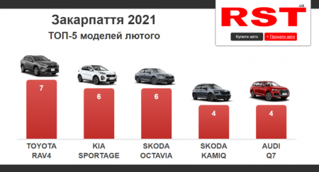 Серед моделей найчастіше купували кросовери Toyota RAV4. Ця модель покрила 9% від кількості усіх проданих автомобілів у лютому. Також серед жителів регіону були популярними Kia Sportage і Skoda Octavia.