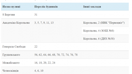 Протягом робіт, подачу водопостачання з ПНС буде призупинено. В зв’язку з цим, упродовж виконання робіт буде відсутнє водопостачання за наступними адресами: