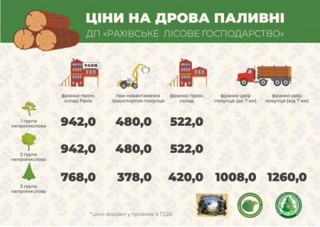 3 метою належного забезпечення потреб населения та закладів соціальної сфери у дровах для опалення, державне підприсмство «Рахівське лісове дослідне господарство» надас інформацію про місця відпуску та ціни на дров’яну деревину непромислового використання.