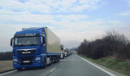 Щоб не створювати дискомфорт для жителів прикордонних сіл, словацька поліція тримає основну масу вантажівок в районі міста Кошице.