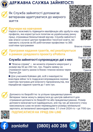 Як Служба зайнятості розробить ветеранам адаптацію до мирного життя – інформує Ужгородська філія Закарпатського обласного центру зайнятості