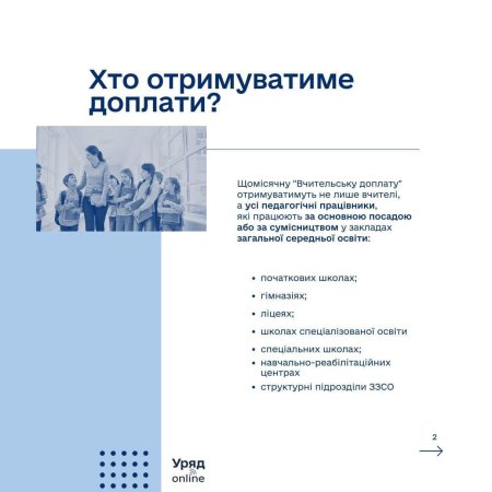 Щомісячну «Вчительську доплату» отримуватимуть не лише вчителі, а й усі педагогічні працівники закладів загальної середньої освіти