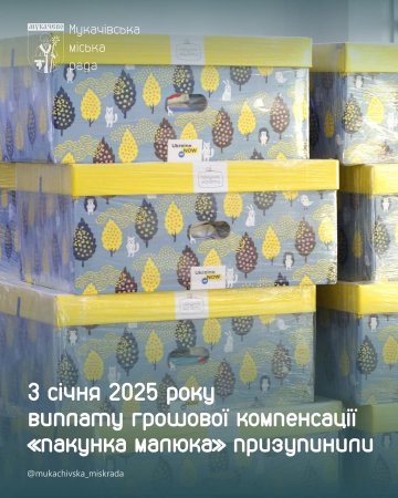 Звертаємо увагу, що з січня 2025 року виплата грошової компенсації одноразової натуральної допомоги «пакунок малюка» не проводиться.