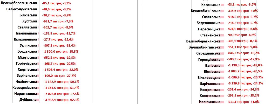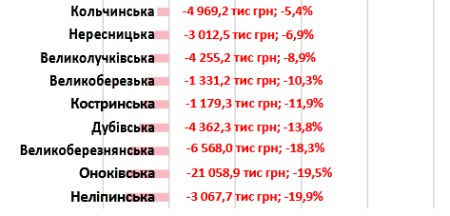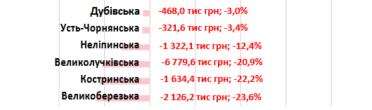 Водночас, декілька громад зафіксували суттєве падіння надходжень до загального фонду, що вимагає уваги до причин такого спаду:
