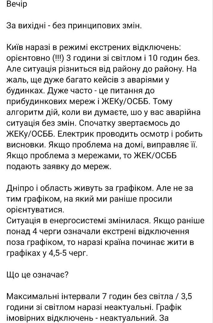 Через дефіцит потужності в енергосистемі диспетчерський центр «Укренерго» змушений залучати більшу кількість черг одночасно. Це означає, що замість звичних двох або трьох черг, під обмеження потрапляють п'ять груп споживачів одночасно.