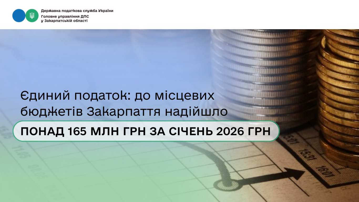 Єдиний податок: до місцевих бюджетів Закарпаття надійшло понад 165 млн грн за січень 2026 року