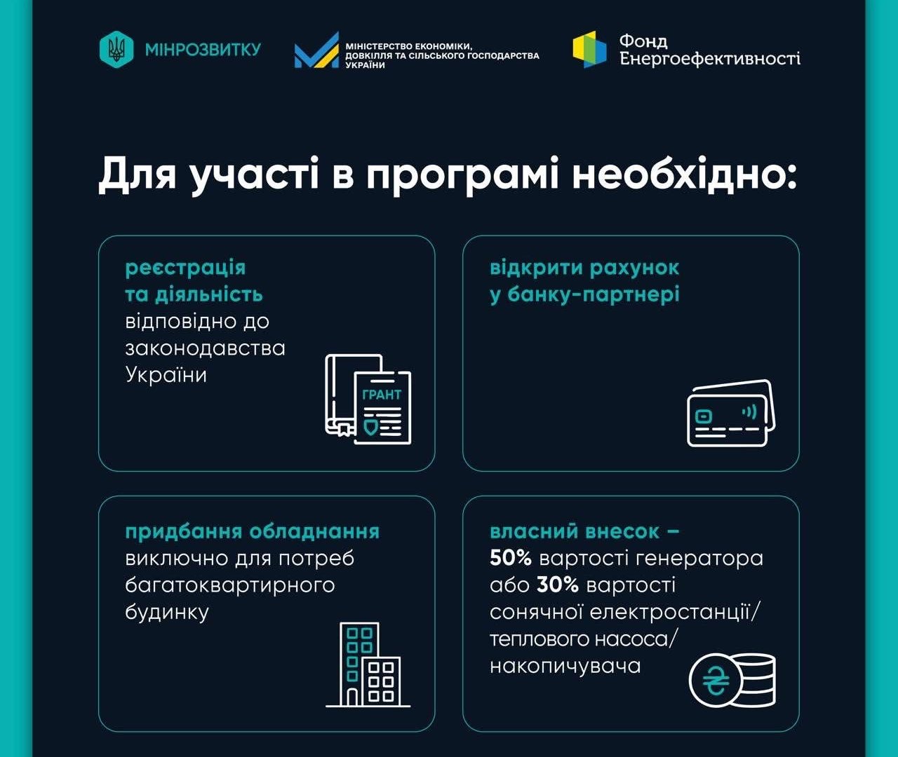- отримати часткову компенсацію вартості обладнання (грант);