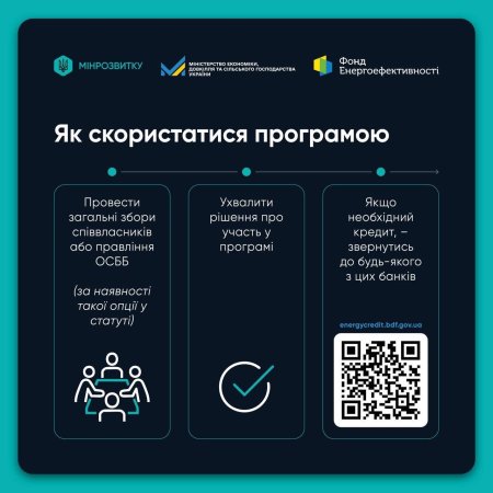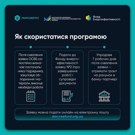 У Закарпатській ОВА зазначають: скористатися програмою можуть як ОСББ, так і ЖБК. Детальний алгоритм подачі заявки, перелік необхідних документів та суми компенсацій оприлюднені в офіційній інфографіці.